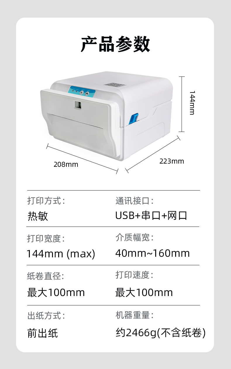 1.一款6寸熱敏條碼打印機,可容納最大160mm寬的紙卷