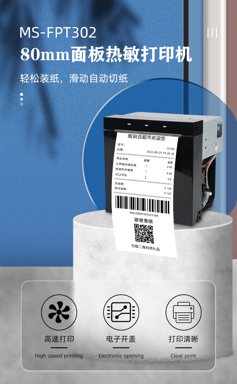 MS-FPT302是一款面板嵌入式自助打印機,專業(yè)的熱敏票據(jù)打印機,用于醫(yī)療、零售、政務等行業(yè)的自助終端設備。水平面蓋嵌入,高端大氣,無人值守打印機適配無人無接觸式服務設備。