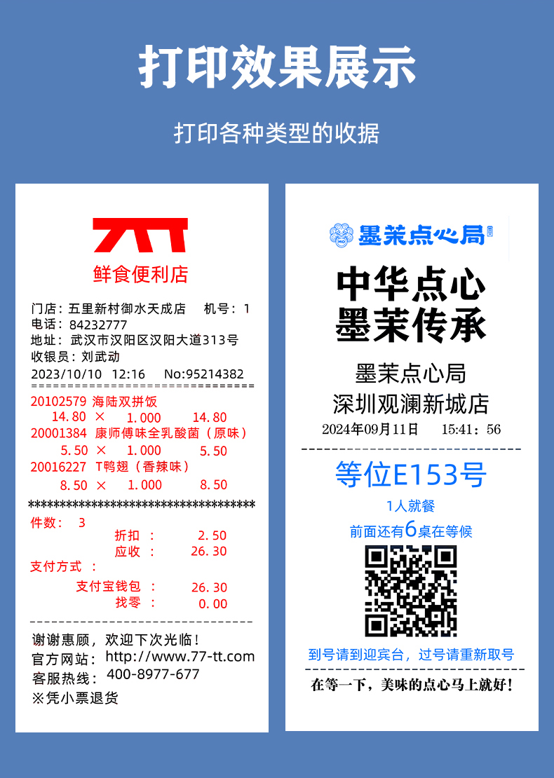 80mm小票打印機(jī) 熱敏后廚房前臺收銀餐飲打印機(jī),支持前臺收銀與后廚菜單打印、打印機(jī)帶切刀自動切紙、USB/網(wǎng)口可供選擇。在零售、餐飲、服裝、寵物、烘焙、母嬰等行業(yè)擔(dān)任前臺收銀、后廚打印、點(diǎn)餐系統(tǒng)、銷售單據(jù),準(zhǔn)備配貨、手機(jī)支付等功能的應(yīng)用。