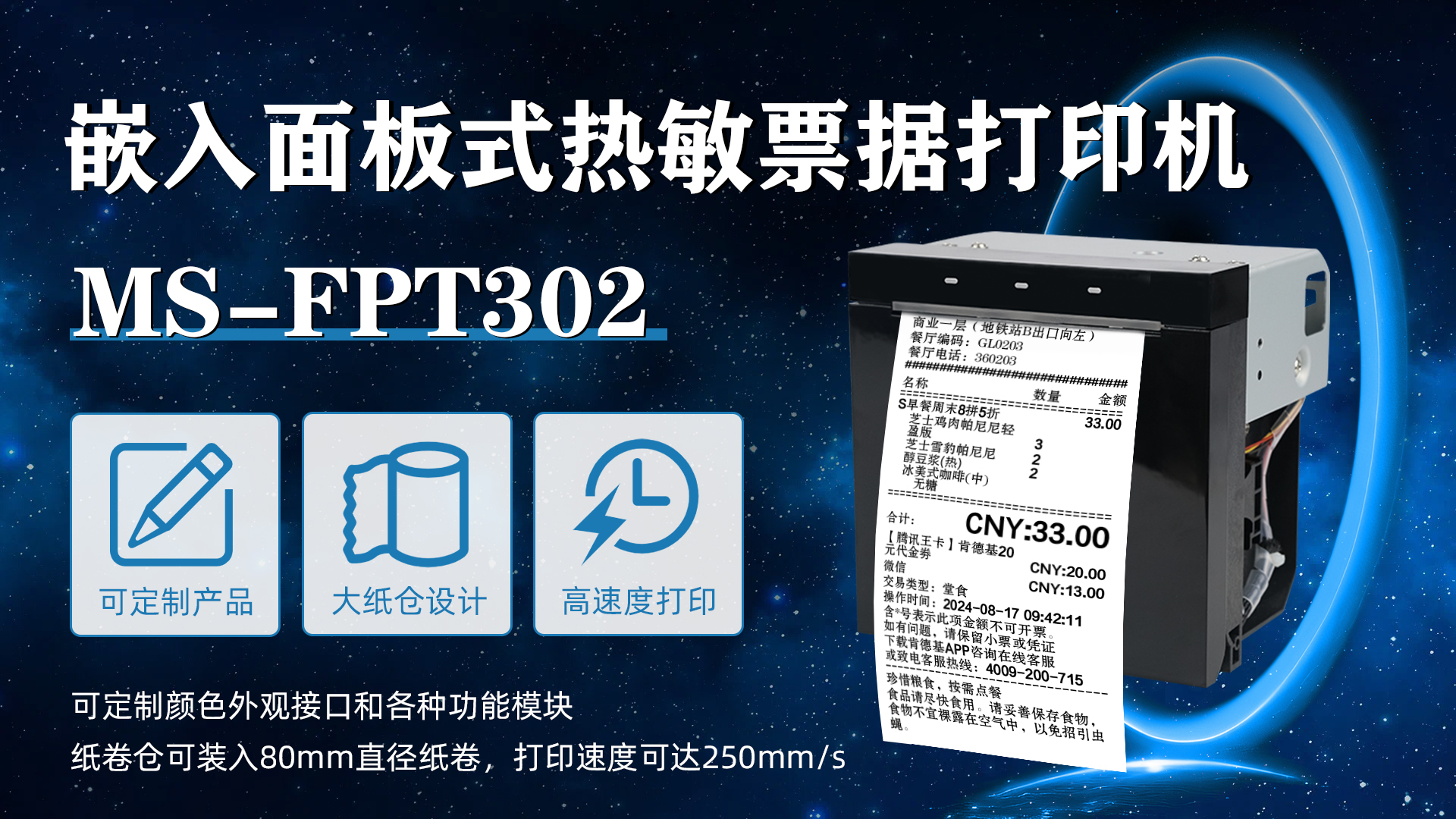 美松研發(fā)的MS-FPT302這一款嵌入面板式的熱敏票據(jù)打印機,它的性能和特點又如何,
